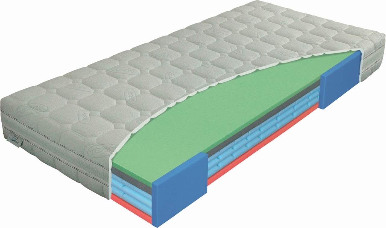 SPECIÁLNĚ ZPEVNĚNÝ BOK Speciálně zpevněný bok matrace pro snazší vstávání z postele. Na boční strany matrace byla použita tužší pěna vysoké objemové hustoty, pro stabilní oporu. Komfort lehacích ploch zůstal zachován.