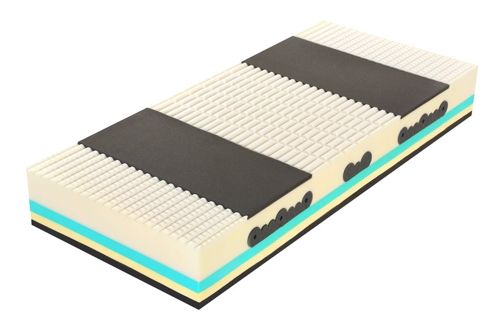 Matrace Spirit je dokonalé spojení pružnosti a paměťového efektu pro pohodlí bez potu. Základna z pěny Flexifoam vysokého objemu a anatomickým systémem Spine Protector ( ramenní a pánevní roznášecí zóny nesou tělo ve všech nálehových úhlech a upravují tuhost v zónách). Reverzní strana matrace s ramenními sekcemi a CubeCare profilací proti otlakům.Snímatelný, dělitelný a pratelný potah na 60°C s 3D ventilací a klimatizačními vrstvami dutého vlákna - termoregulace. Doporučená nosnost do 150 kg.
