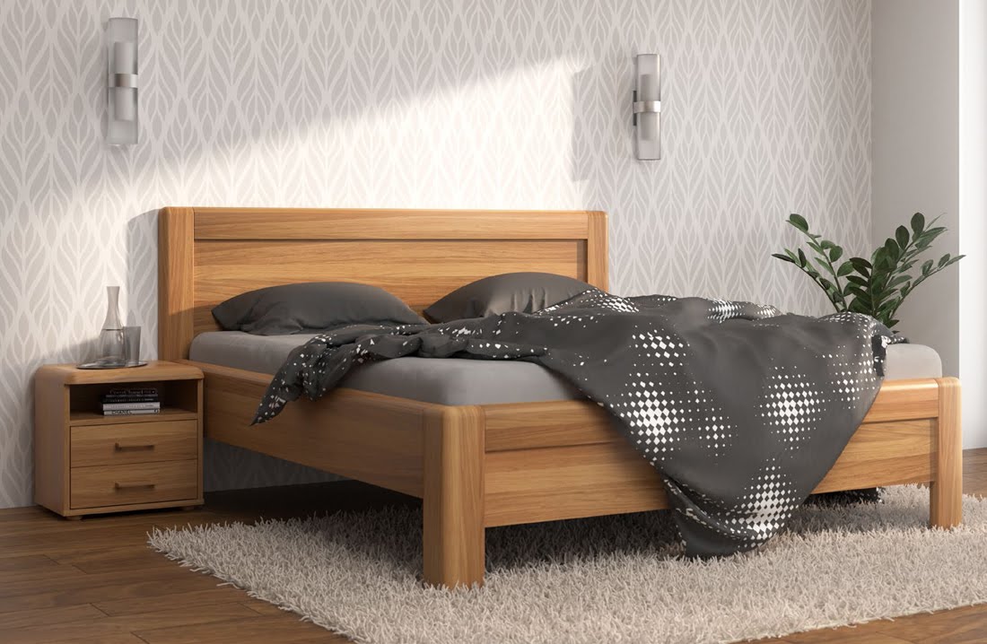 Moderní postel s členitým čelem s dokonale propracovanými liniemi. Vyrábí se v provedení masiv buk a dub s velkým výběrem moření a olejování dřeva. Postel nabízíme v rozměrech 90, 120,140,160,180,200 x 200 cm, ale i v prodloužených délkách 210, 220 cm. Postel můžete doplnit nočními stolky a úložným prostorem.