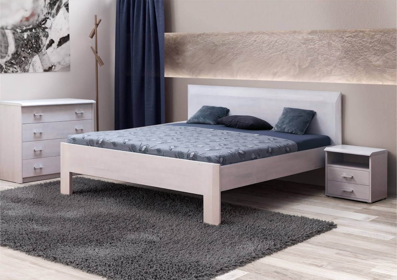 Masivní dřevěná postel s jednoduchým čelem. Vyrábí se v provedení masiv buk a dub s velkým výběrem moření a olejování dřeva. Další možností je imitace masivního dřeva s velkým výběrem odstínů. Postel nabízíme v rozměrech 90,120,140,160,180,200 x 200 cm, ale i v prodloužených délkách 210,220 cm.