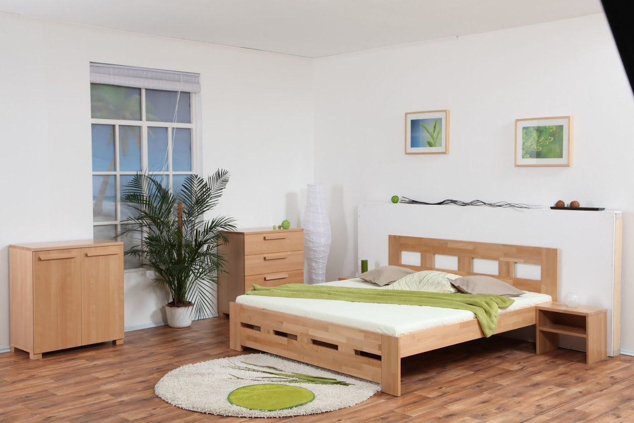 Masivní dřevěná postel. Vyrábí se v provedení masiv buk cink. K posteli nabízíme i nočním stolky, úložné prostory a šatní skříně. Každý také ocení možnost si vybrat z 20 barevných odstínů moření dřeva.