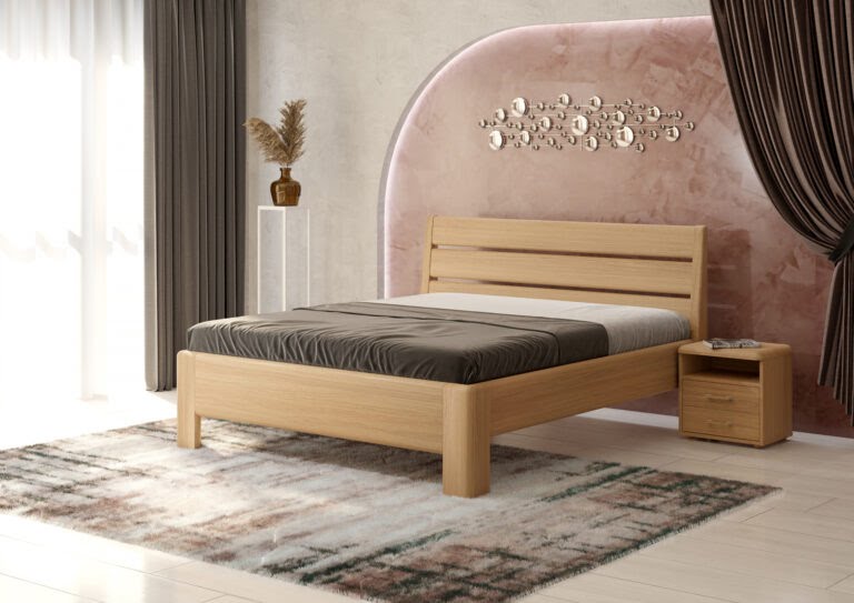 Moderní postel s členitým čelem v sobě spojuje praktické využití s dokonale propracovanými liniemi. Její masivní vzhled je určen zejména do prostornějších ložnic. Plnost masivního čela vytváří pocit solidnosti a jistoty, který se důmyslně doplňuje s jemně zaoblenými hranami po celé konstrukci postele. Vysoce kvalitní postel české výroby zajišťuje pohodlné a zdravé ležení.