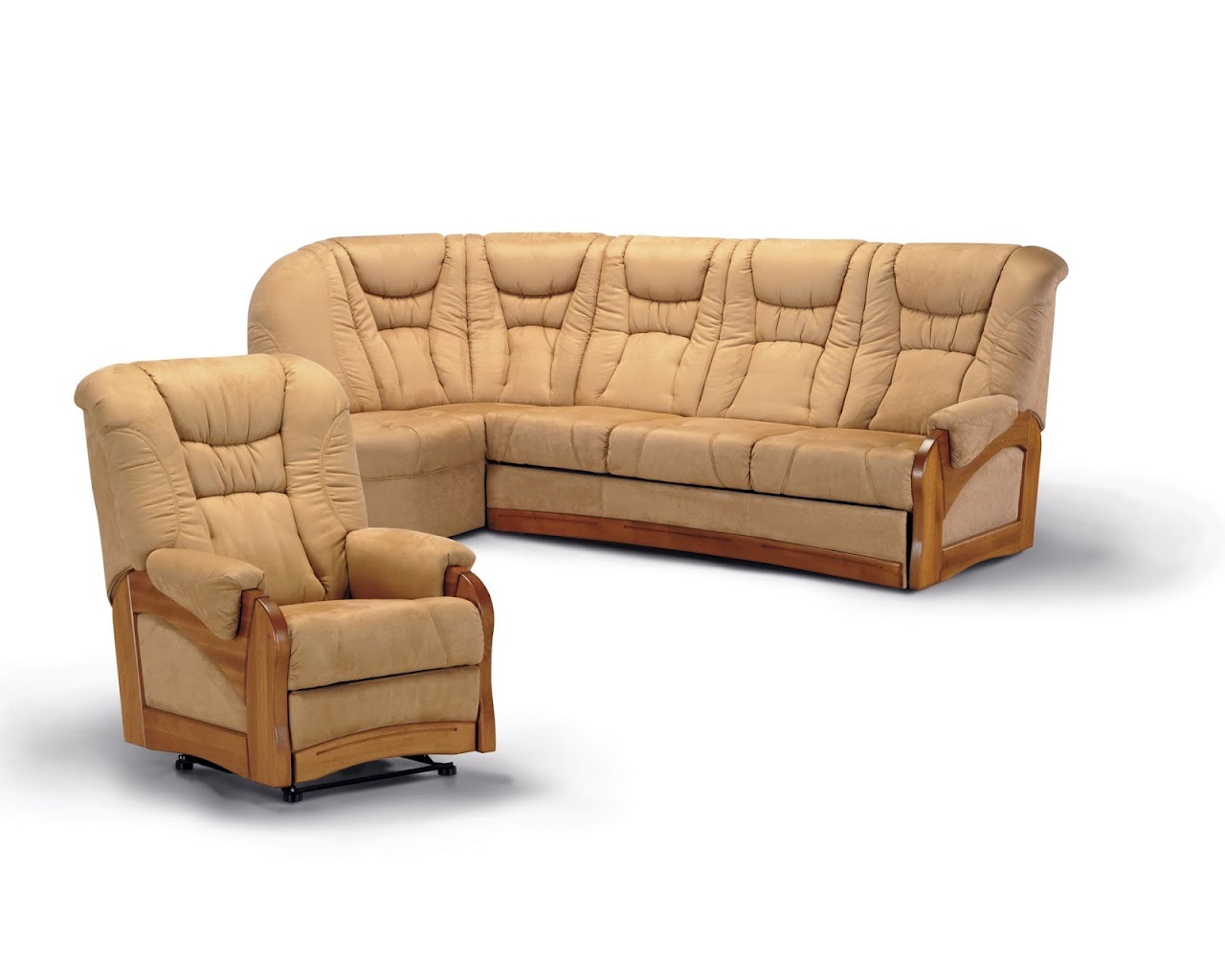 Sedací souprava Sabo se vyrábí jako sektor s velkým sortimentem prvků, které lze vzájemně skládat. Na výběr jsou díly pevné, s úložným prostortem nebo rozkládací pro příležitostné přespání. U křesel je možnost zabudování relaxačního mechanismu ,který se ovládá ručně nebo elektrickým mototem. Dřevěné područky a ozdobné lišty, vyrobené z bukového masivu jsou povrchově dokončené mořením a lakováním v barevných odstínech dle výběru zákazníka. Alternativou jsou područky celočalouněné bez bukového masivu a ozdobných lišt. Nabízíme široký výběr kvalitních potahových látek a přírodních kůží.